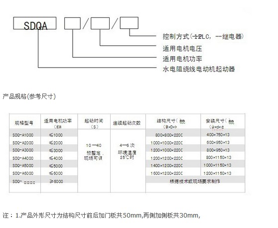 注:1 ) 起動電流倍數,根據用戶要求和電機及負載情況確定。